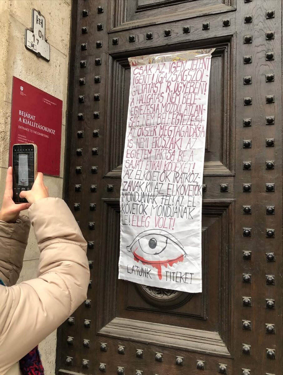 A három nap eltelt, a fellebbezési idő lejárt, az ítélet jogerős, az ügy “lezárult”? Nem zárult le. Az elmúlt napokban több online fellépéssel találkoztunk. Emellett az egyetem hallgatói több akciót is szerveznek az áldozattal szolidaritásban. „Pedig az ember azt hinné, a hallgató, aki a közösség tagja, nem csupán egy ügyszám, mint aminek például a bíróság kezeli az áldozatokat.” 1 Azt hinnénk, hogy az intézmény, amely nap mint nap a művészet szabadságáról, emberségről, érzékenységről beszél, nem engedheti meg magának, hogy vak vagy néma maradjon ebben a történetben. Mégis, mintha újra és újra azt bizonyítaná, hogy az áldozatnak itt nincsen helye, csak az intézményi csendnek és a saját érdekeinek. Az intézmény patinás hírnevének fenntartása fontosabb, mint a hallgatók érdekképviselete?