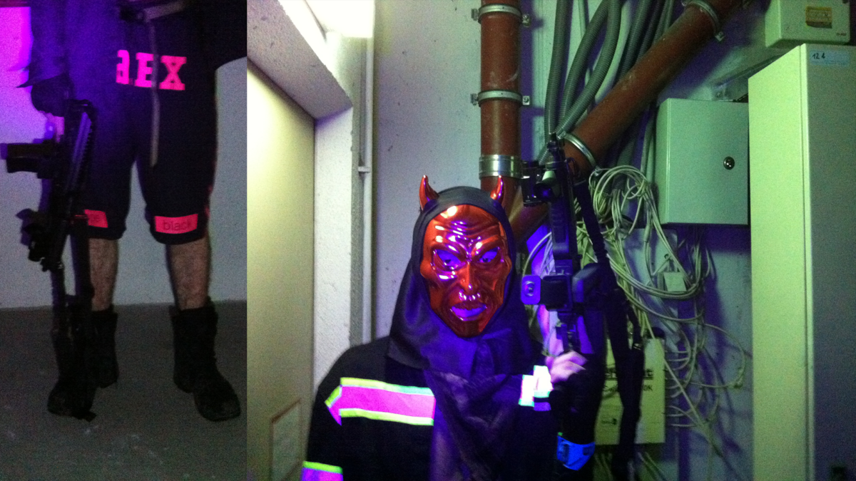 A Manhunt multimédiás projekt: rövidfilm és performansz egyben, amelyeket egyszerre kell nézni. Az előadást a Z generáció háborútól és a militarizációtól való félelme, és a félelemkeltő propaganda kampányok hatékonysága inspirálta.