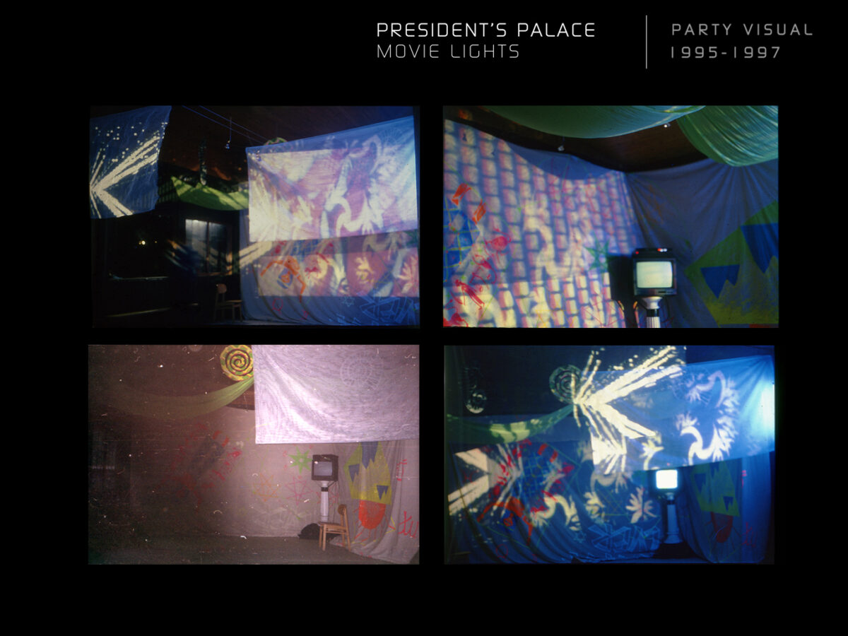 A President’s Palace Movie Lights (PPML) kollektíva Time Capsule (VJ Game) (1995–1997) című projektje a ’90-es évek közepének audiovizuális kísérleteit idézi meg. A csoport diavetítést, Super8-filmhurkokat, videófeedbacket és korai digitális animációkat alkalmazott, saját VJ–DJ helyszíneiken improvizatív performanszokat hozva létre, többek között a Sziget Fesztiválon. Örökségüket Koós Árpád 2003-ban a VJ Game projektben dolgozta fel újra.