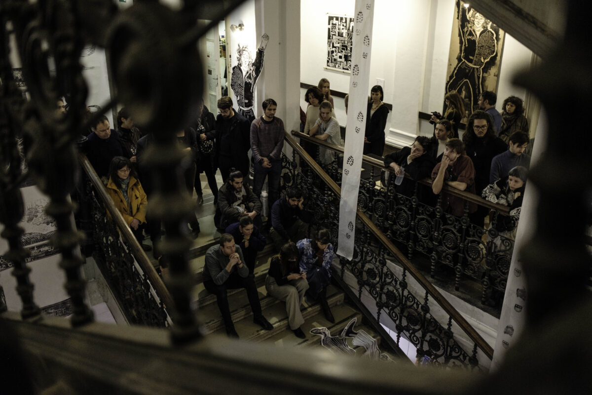 2025. november 24-én egy jelentős esemény, a Printfest vette kezdetét a Magyar Képzőművészeti Egyetem főépületének első emeleti folyosóin és műtermeiben. Sokan talán nem is sejtették, mennyi esemény előzte meg ezt a hetet, mennyi véletlen fordulat és találkozás, mennyi elhatározás és munka. Az együttműködés a Magyar Képzőművészeti, az Akademie der Bildenden Künste Wien és a Vysoká škola výtvarných umení v Bratislave egyetemek közös szervezésében valósulhatott meg, melynek köszönhetően vendégül láthattuk ugyancsak sokszorosító grafikára specializálódott hallgatótársainkat. Renata Darabant, Gyenes Gábor és Pézmann Andrea pedig tanárokként kísérték végig a készülő projekteket. A képgrafika szak hallgatóiként szerencsések vagyunk, hiszen már nem csupán oktatóként, hanem régi barátként érkeztek hozzánk, mivel évek óta újra meg újra találkozunk és dolgozunk közösen különböző workshopokon, kiállításokon valamint művésztelepeken.